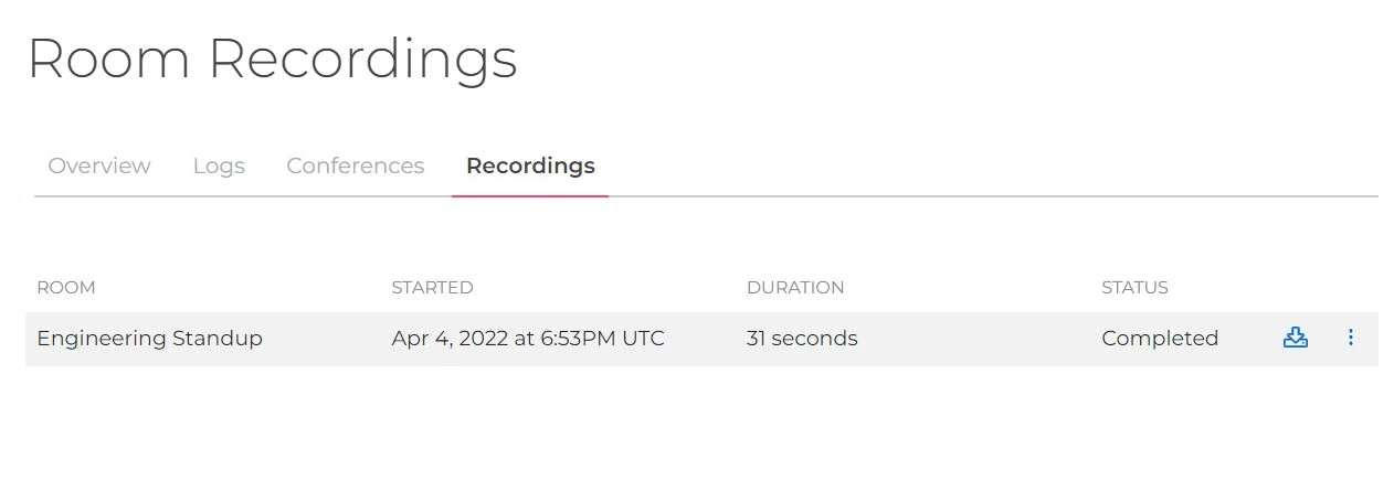 Recordings are accessible later in the Recordings tab in the Video section of your SignalWire Space.